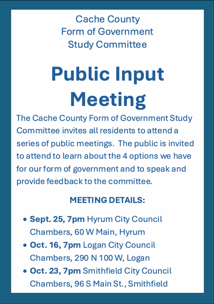 Cache County Public Input Meeting October 23 @ 7:00 PM at the Smithfield City Council Chambers